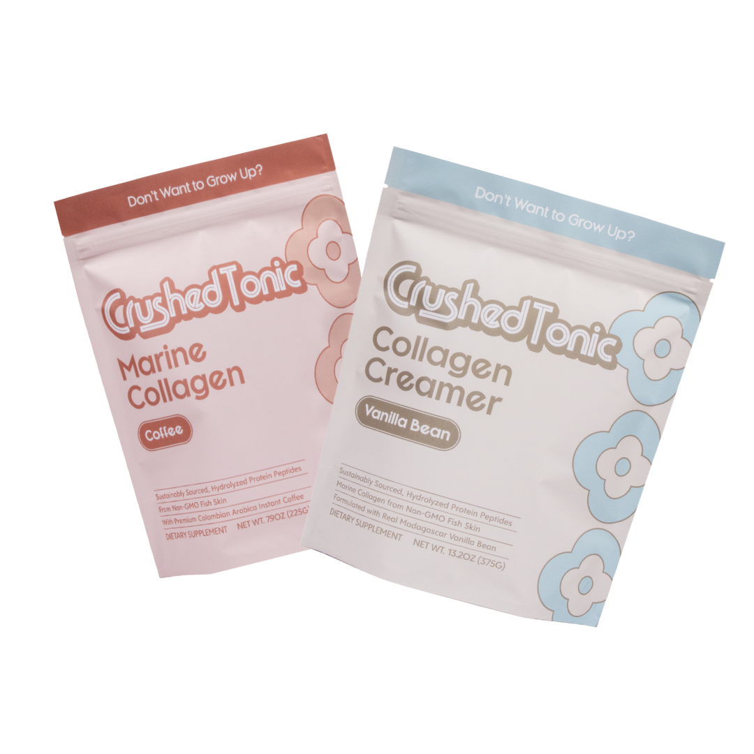 Marine collagen has a smaller molecular size (4,000 Daltons in Crushed Tonic's marine collagen compared to 5,000 Daltons for bovine). Smaller peptides allow for faster and better absorption, making marine collagen particularly effective for skin health and anti-aging. While bovine collagen is still highly effective, it absorbs slightly slower due to its larger peptide size. (FYI - other bovine collagens are 9,000 Daltons!)